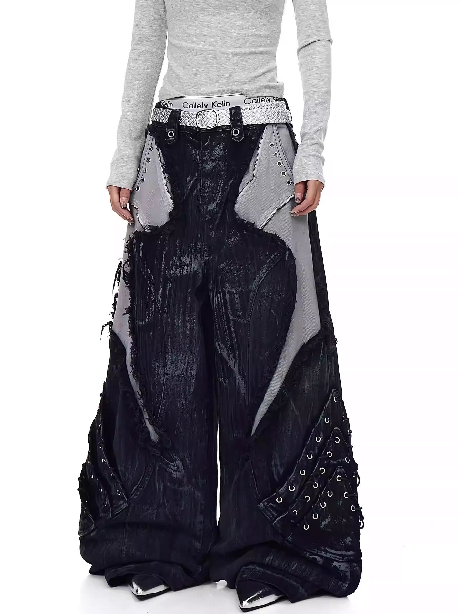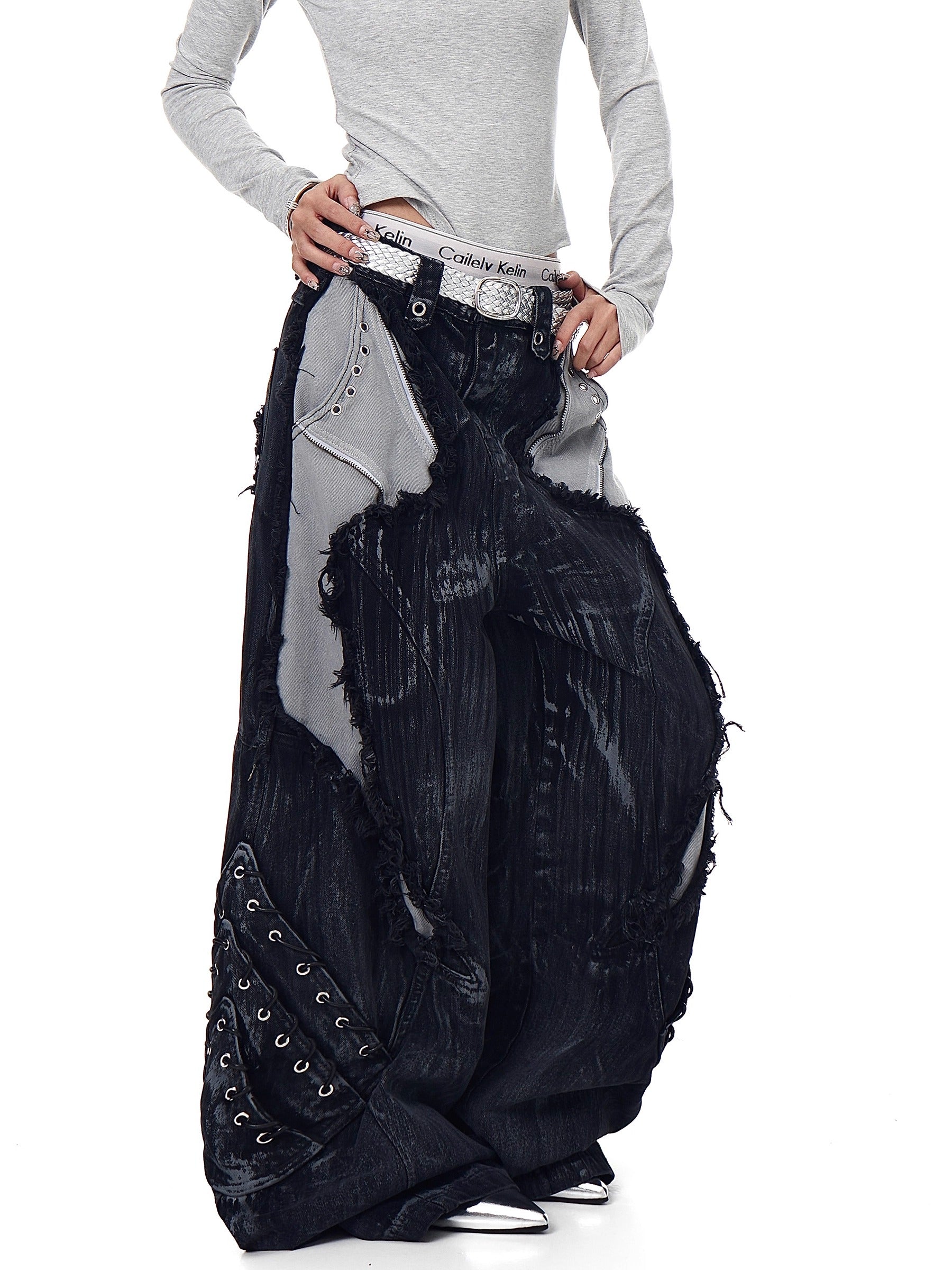 High-Street Patchwork Distressed Wide-Leg Jeans