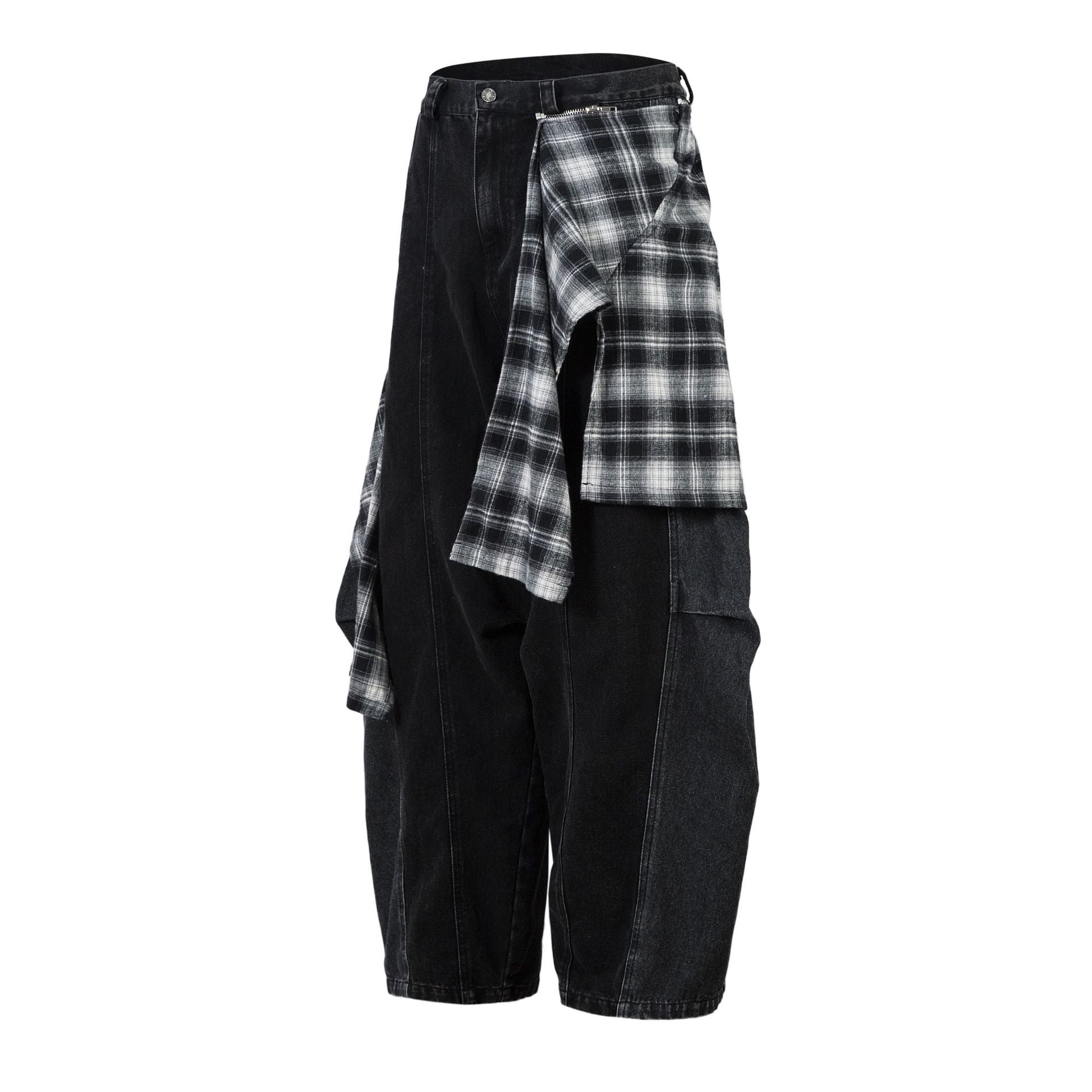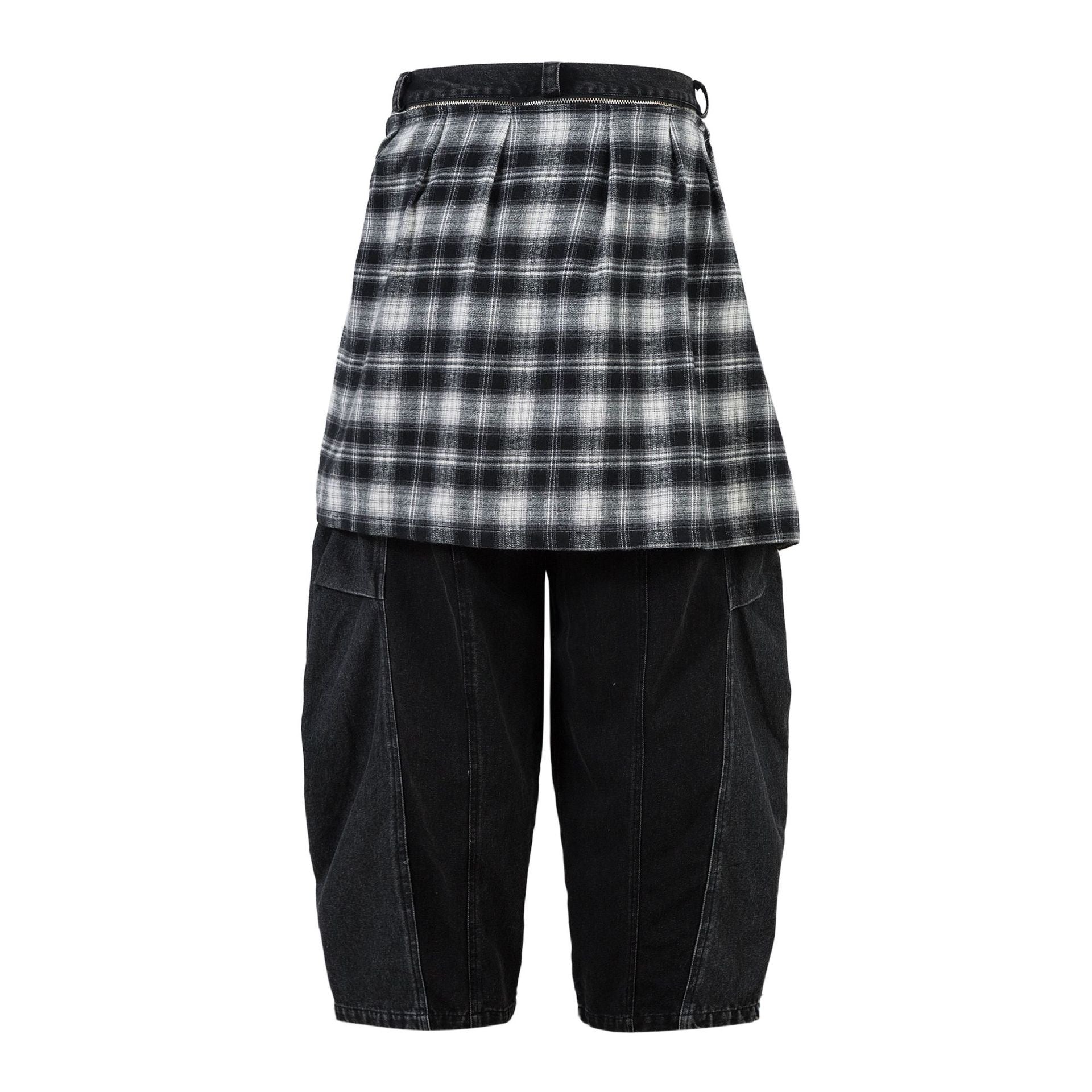 Retro Plaid Skirt Stitching Scimitar Jeans